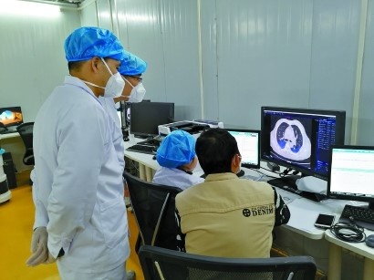 ◆火神山医院正在安装AI医疗设备。深睿医疗提供